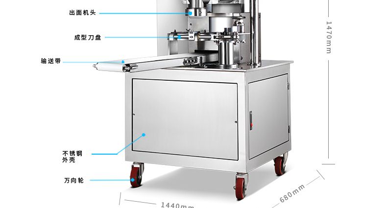 ◆ 結構合理,成型、進餡、進面與控制面板均由獨立電機帶動不易發(fā)生連帶故障,且維修及拆裝清洗方便。
