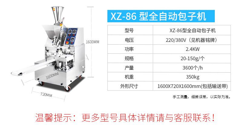 ◆ 生產(chǎn)品種多樣化,可生產(chǎn)各種不同餡料的包子,廣泛用于個體戶、速凍食品廠、學校等單位。可滿足不同客戶群體。