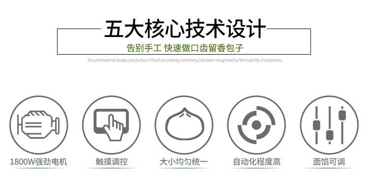 ◆制品多樣化,可生產(chǎn)各種肉包、肉菜包、菜包、小籠包、湯包、水晶包、圓饅頭、奶黃包、豆沙包、叉燒包、南瓜餅等幾十種包餡制品。
