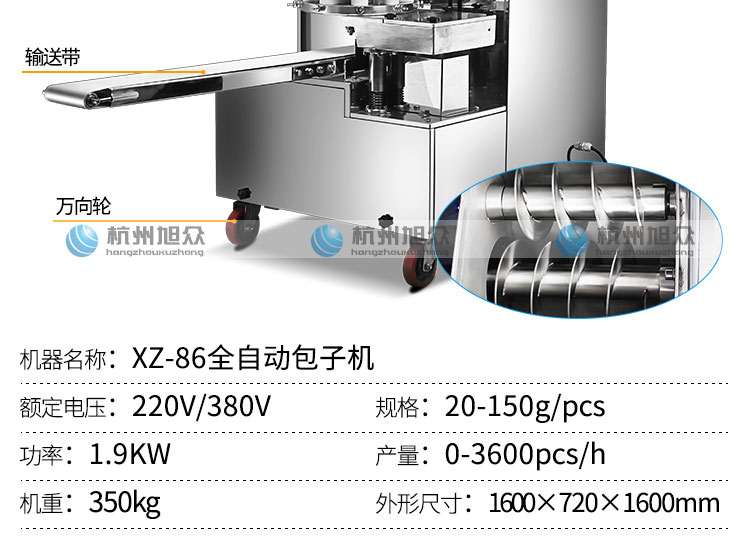旭眾牌XZ-86全自動(dòng)包子機(jī)體積小重量輕,外殼及接觸食品部分均由不銹鋼制造,外觀精美耐用;采用三變頻無(wú)極變速調(diào)控,生產(chǎn)性能穩(wěn)定精準(zhǔn)。設(shè)計(jì)先進(jìn),結(jié)構(gòu)簡(jiǎn)單,操作方便。獨(dú)有的三大特色: