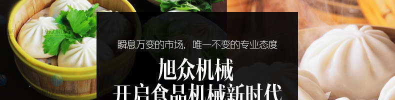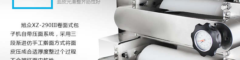 旭眾牌XZ-290III型卷面式包子機是由本公司自主設(shè)計研發(fā),精工打造的一款專業(yè)仿手工生產(chǎn)制作各種包餡類食品的高效實用型機械設(shè)備,是一款生產(chǎn)肉包、菜包、小籠包、豆沙包、奶黃包等多種包餡類產(chǎn)品的多功能實用新型食品機。