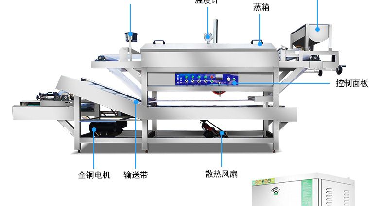 ◆節(jié)能低耗:通過新型節(jié)能路、節(jié)能風(fēng)管及隔熱層等,使水箱內(nèi)膽充分吸收熱量,因此,比普通河粉加工機(jī)器節(jié)能40%以上;
