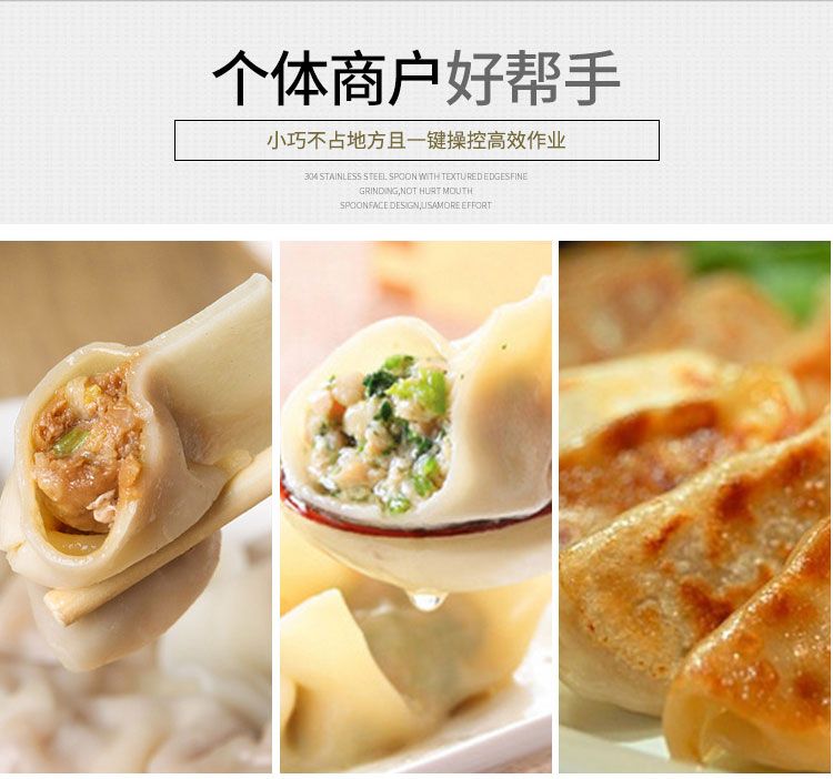?餡量、面皮厚薄隨時可調(diào),生產(chǎn)的餃子,皮薄餡滿,生產(chǎn)速度快,省工省時;