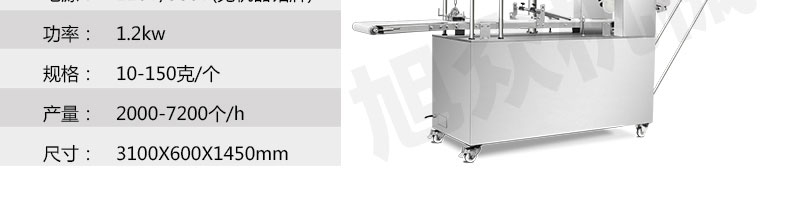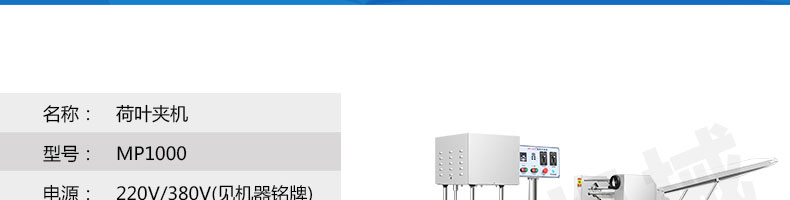 名稱MP1000荷葉夾機 電源220/380V(見機器名牌) 功率1.2kw 產(chǎn)量2000-7200個/小時 尺寸3100*600*1450mm 重量380kg 規(guī)格10-150克/個 其他