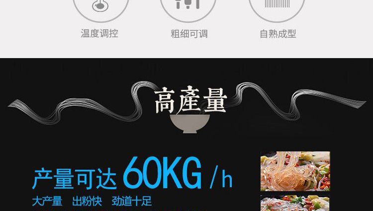 ◆ 米粉機(jī)生產(chǎn)多樣性可生產(chǎn)米粉、米線、粉絲、粉條、年糕、玉米面條、各種雜糧粉絲、各種面條、雜糧面條、彩色面條以及以紅薯、玉米、大豆、蠶豆等制成淀粉為原料的等多種食品而且每種食品厚薄、粗細(xì)等規(guī)格可根據(jù)需要任意調(diào)整。