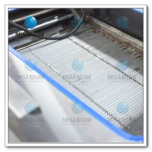通用斜切魚(yú)片機(jī)是模擬手工切片的原理采用變速箱傳動(dòng),自動(dòng)進(jìn)料的原理,自動(dòng)研制而成。一次性可斜切1-3片整片魚(yú)肉(一條魚(yú)分為兩整片)。本機(jī)采用50-100片刀同時(shí)斜切的原理,解決了單刀切片效率慢和不均勻的難題,真正意義上實(shí)現(xiàn)了多片斜切。