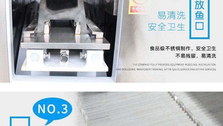 ?本機(jī)采用優(yōu)質(zhì)不銹鋼托魚(yú)板,衛(wèi)生干凈,刀片采用進(jìn)口材料;