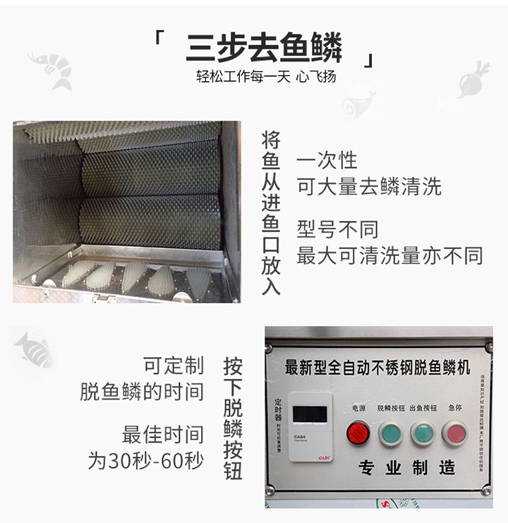 3.功能強大,直接實現(xiàn)去魚鱗和殺魚的工藝,生產效率高,產量大。