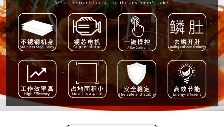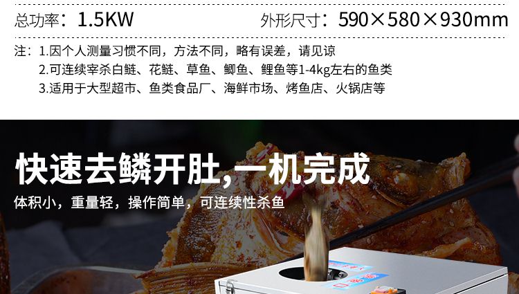 名稱XZ-018開肚去鱗殺魚機(jī) 電源220 功率1.5kw 產(chǎn)量 尺寸545×525×850mm 重量85kg 規(guī)格0.5Kg—4Kg 其他