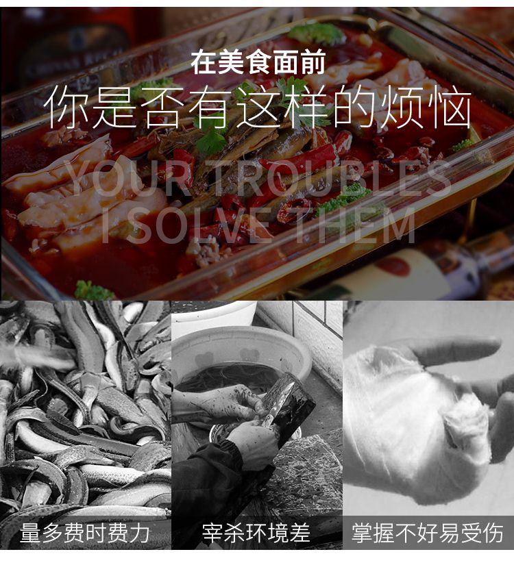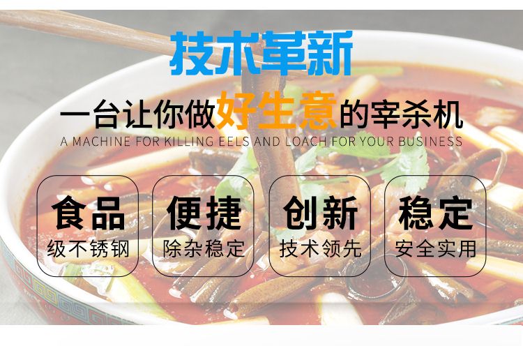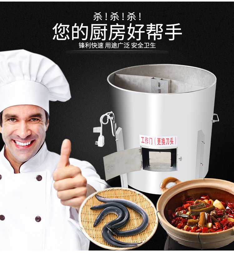 鱔魚泥鰍宰殺機(jī)是我廠根據(jù)市場需求,自行研發(fā)設(shè)計(jì)的,專業(yè)宰殺鱔魚、泥鰍的通用型機(jī)電設(shè)備,具有工作效率高,能耗低,故障率低,經(jīng)久耐用,操作安全方便,外形美觀大方等特點(diǎn)。填補(bǔ)了市面上黃鱔泥鰍宰殺設(shè)備的空白,是一款不錯的投資產(chǎn)品,可廣泛應(yīng)用于菜市場、食堂、食品加工廠、酒店等場所。