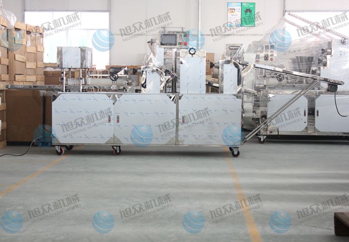 ?生產(chǎn)速度快,效率高,生產(chǎn)流程流暢,各環(huán)節(jié)都輔以電控設(shè)備控制,不會(huì)出現(xiàn)堵面,破酥等現(xiàn)象;