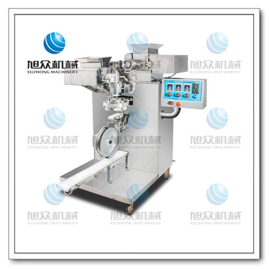 旭眾牌VFD-4000A型全自動湯圓成型機是一款依外皮及餡料的各類不同,可制作湯圓、豆沙包、南瓜餅、奶黃包、含餡饅頭、玉兔包等包餡食品。功能齊全,適用性廣,自動化程度高,定量準確,操作簡單,只要將面團與餡料放入進料口,開機便可自動搓圓、成型,制品不易變形。