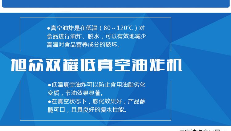 ●真空油炸是在低溫(80~120℃)對食品進(jìn)行油炸、脫水,可以有效地降低高溫對食品營養(yǎng)成分的破壞。